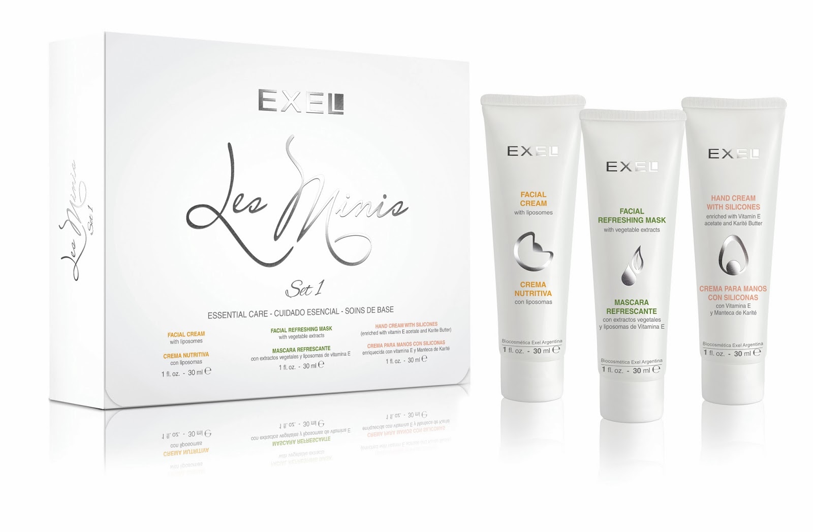 Una selección de productos estrella de la Línea de cosmética profesional del laboratorio cosmético mas certificado del país, en miniatura. ¨A veces, las muestras pueblan nuestros necessaires”, explica Ines Gamarci, marketing manager de Biocosmetica EXEL. Lo cierto es que no son suficientes para atender nuestros tiempos fuera de casa y tampoco son bellas. “Por eso creamos Les Minis –continua la ejecutiva— que es básicamente la versión pequeña de los productos esenciales que amamos, esos que nos provocan placer al meter la mano en la cartera y decir, ¡sálvame ya!.” Armados dentro de una lindísima White Box con encantadores pomos de 30 ml y stamping plata, distinguen a los sets Les Minis. Son ideales para regalar en Navidad en sus dos tipos, igualmente imprescindibles.