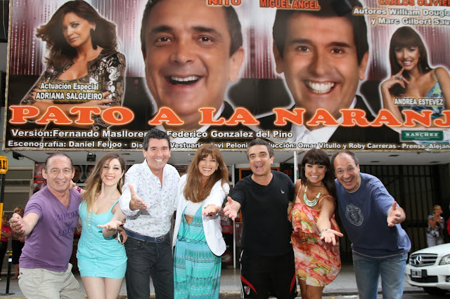 Hace apenas unas horas, hoy sábado 14 de Diciembre, se acaba de terminar de colocar la nueva y gigantesca marquesina del Teatro Enrique Carreras de Mar del Plata donde con producción de Aldo Funes, hoy debuta en «la ciudad feliz» la comedia «Pato a la Naranja», con el regreso de la dupla histórica de éxitos marplatenses: Nito Artaza Y Miguel Ángel Cherutti, juntos en el escenario con una divertidísima señora comediante: Adriana Salgueiro, la belleza de Andrea Estévez y la joven promesa: Kitty Locane.