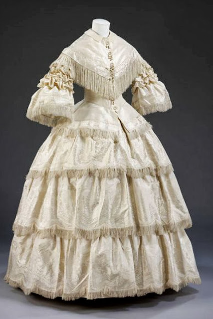 | Este vestido fue diseñado en Gran Bretaña para Margaret Scott Lang en su boda con Henrry Scott en la iglesia presbiteriana de Marylebone, Londres, en 1857. |