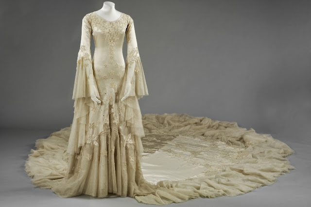 | Vestido de seda satinada de Norman Hartnell, para la Duquesa Margarita de Argyll, 1933. |