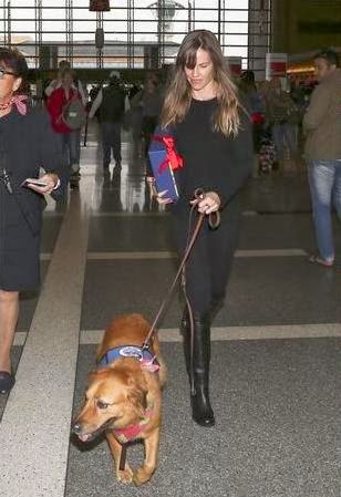 Además lució en el aeropuerto de Los Ángeles las botas de cuero negro de la marca con aplique de oro.