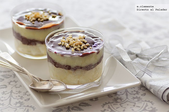 A todos los que les guste el chocolate les encantarán estos vasitos de pera y tres chocolates, tres sabores distintos unidos al frescor de la fruta que convierten esta receta en un dulce irresistible. Eso sí, para que las ganachés de chocolate no endurezcan os aconsejo los toméis a temperatura ambiente o por lo menos dejarlo treinta minutos fuera de la nevera antes de consumirlos,
