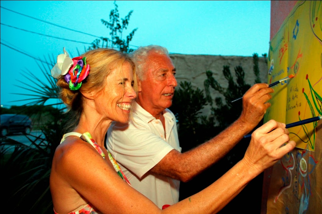 | Pato Gil Villalobos y el empresario Rodolfo Constantini quién pintó junto a la artista |