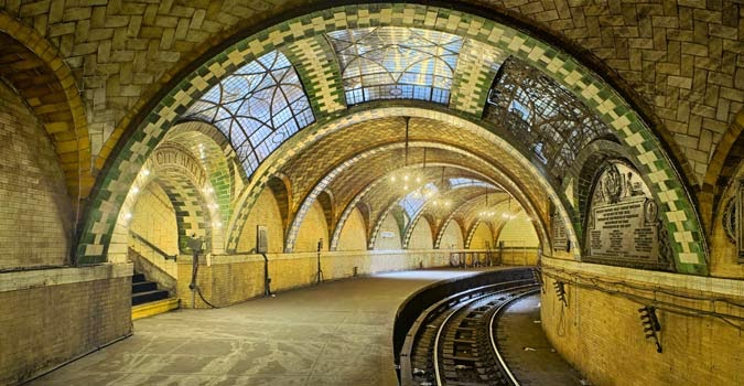 En octubre de 1904 se inauguró la primera línea del metro de Nueva York, construida por la Interborough Rapid Transit Company. La empresa temía que la gente no quisiera viajar bajo tierra, por lo que pidió al arquitecto español Rafael Guastavino (Valencia, 1842-Carolina del Norte, 1908) que diseñara una estación y unos túneles dignos de un palacio. El resultado fue City Hall Station, un espacio repleto de bóvedas y arcos de ladrillo visto y cerámica; tan espectacular que fue conocido como la «catedral subterránea». Por desgracia hoy es una estación fantasma. Acabó quedándose pequeña y cerró en 1945.