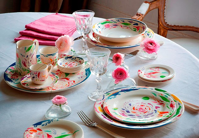 La loza no es tan fina como la porcelana. Lo que sí transmite la primera, aparte de mayor resistencia, es un aire campestre, perfecto para mesas de madera natural o poco trabajada. Es cuando nos fijamos en Gien y, en este caso, en la colección Passion, en torno a la rosa. En esas mesas, los manteles y bandejas de Jean-Vier van a la perfección, con sus rayas tan características del País Vasco.