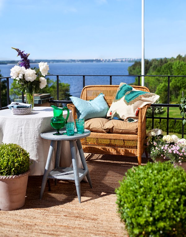 Manteles de hilo, vasos y copas en profundo color esmeralda y vajillas en loza azul turquesa. ¿Qué os parecen estos tonos para la rentrée?.