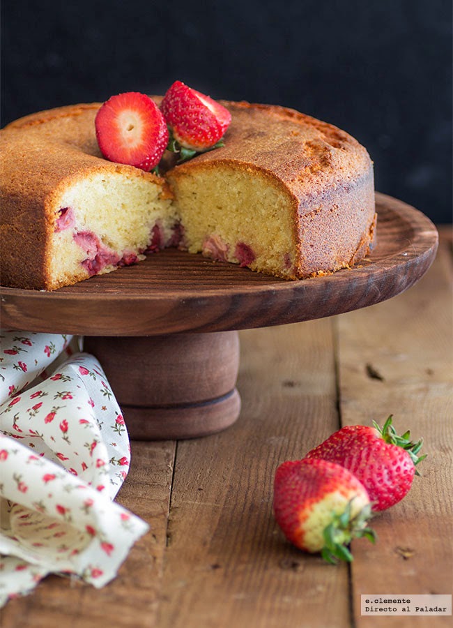 El bizcocho de fresas y nata es delicioso para acompañar cualquier desayuno o merienda. Podéis espolvorearlo con azúcar glas o decorarlo con fresas frescas, y si sois muy golosos servir cada ración con una cucharadita de creme fraîche en el plato.