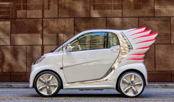 | El Smart con alas customizado por el diseñador estadounidense Jeremy Scott. |