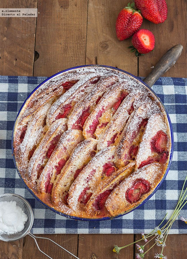 Por lo general este pudding de frutillas y brioche se suele tomar a temperatura ambiente o incluso templado. Simplemente espolvoreado con azúcar glas tenemos a nuestra disposición un postre o merienda sencillo, pero muy especial.