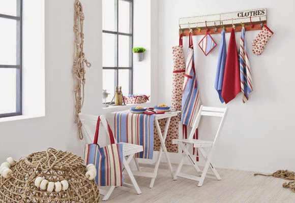 Rojo, azul y blanco y rayas por todas partes, así es el escenario para este desayuno marinero en el que se han colado algunos accesorios típicamente reconocibles de este estilo que nunca psa de moda, unas cuerdas y un cesto confeccionado con ellas.