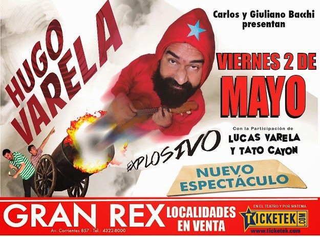 Carlos y Giuliano Bacchi presentan EXPLOSIVO, el nuevo espectáculo de humor de Hugo Varela que será presentado hoy, viernes 2 de Mayo de 2014, a las 21,30 horas en el Teatro Gran Rex, de Buenos Aires y que luego realizará una gira nacional e internacional.