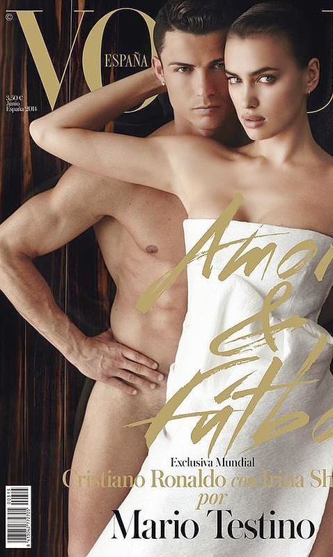 «Compartir portada con Irina supone mucho. Irina es la mujer más hermosa del mundo y trabajar con ella ha sido, además de una sorpresa, algo muy especial. Era la primera vez que hacíamos algo juntos. Y lo he disfrutado», confiesa Cristiano Ronaldo a la redactora jefe de «Vogue». El astro del fútbol aparece detrás de su novia completamente desnudo mostrando a los lectores la perfecta definición de sus músculos con la mano en la cintura mientras mira de manera seductora a cámara.