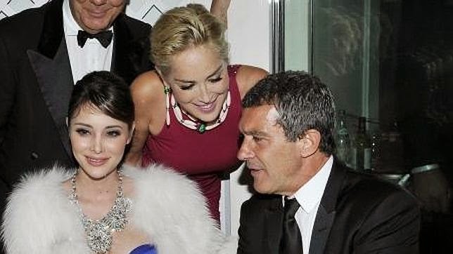 | En la imagen, Sharon Stone lanza una mirada coqueta a Antonio Banderas el pasado 20 de mayo |
