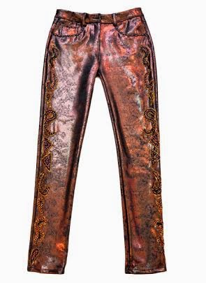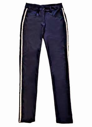 Pantalón de lycra con galón oro, corte jean. $ 1.200.-