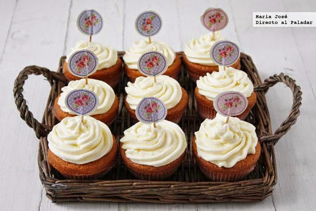 Sacamos los cupcakes del horno y los dejamos enfriar sobre una rejilla. Mientras preparamos la crema. Mezclamos 200 g de mantequilla ablandada con el azúcar molido tamizaso. Añadimos 2 o 3 cucharadas de leche merengada y batimos con las varillas hasta obtener una crema. Cubrir con ella los cupcakes con ayuda de una manga pastelera.
