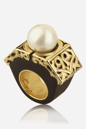 | Escalera hacia la luna. Sortija de oro amarillo, perla mares del sur y Ébano de Macassar. |
