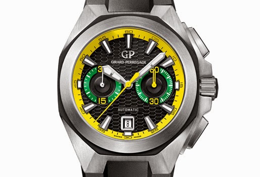 | Girard-Perregaux. Chrono Hawk. Los colores de la bandera brasileña visten esta edición limitada de 25 ejemplares. Precio: c.p.v. www.girard-perregaux.com |