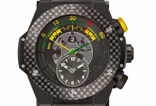 | Hublot. Big Bang Unico Bi- Retrograde Chrono. Concebido para seguir los partidos. 45 mm de diámetro, caja de cerámica con bisel de fibra de carbono. Movimiento automático. Precio: 22.900 euros. www.hublot.com/es