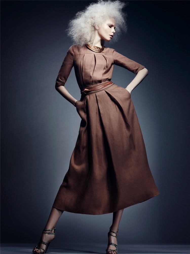 | Vestido tableado de Hermès, con cinturón de la misma marca. Sandalias de animal print y collar de Joaquín Berao. |