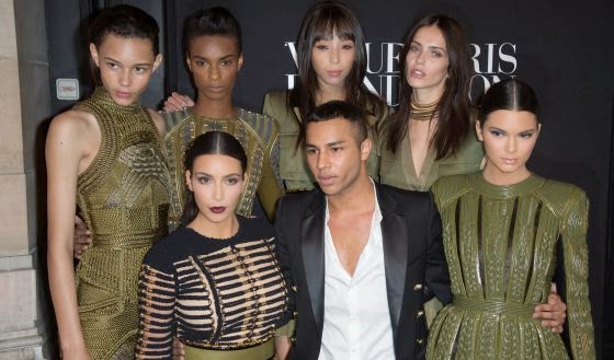 | El diseñador de Balmain junto a Kim Kardashian (a su derecha) en una presentación. / CORDON PRESS |
