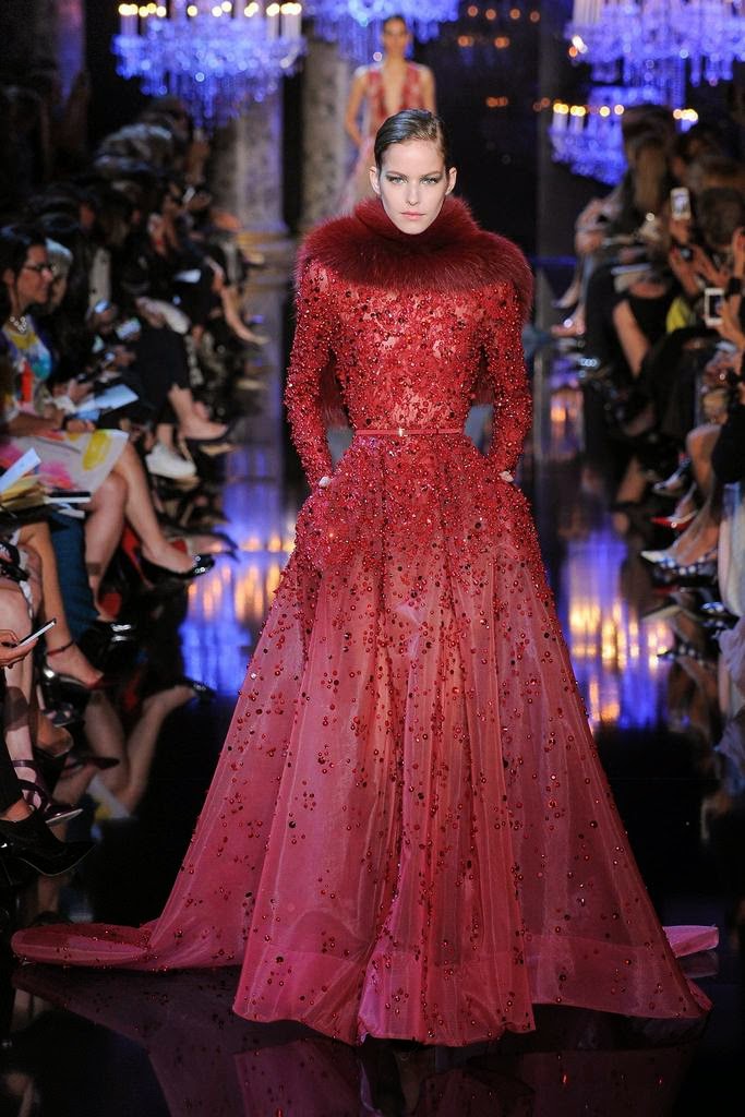 Suzy Menkes — ¿Cuantas lámparas tipo araña se necesitan para dar luz a un desfile de Elie Saab? ¡Nueve!