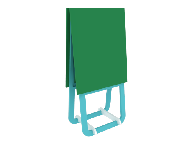 El atril con pizarrón ECO, con base en mdf crudo y pizarra verde para tiza, y el atril con pizarrón, con base laqueada y pizarra verde para tizas, completan esta oferta divertida para los más pequeños.