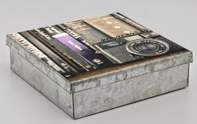*Caja baja con pizarra de chapa de zinc, con vinilo exterior y terciopelo en la base interior. Mide 18x18x5cm. Resulta ideal para guardar todo tipo de documentos y papeles importantes. Precio: $160.