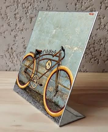 *Portarretratos de chapa de zinc, con vinilo exterior y terciopelo. Mide 18×18 cm y cuenta con una superficie imantada para colgar fotos. Precio: $150.