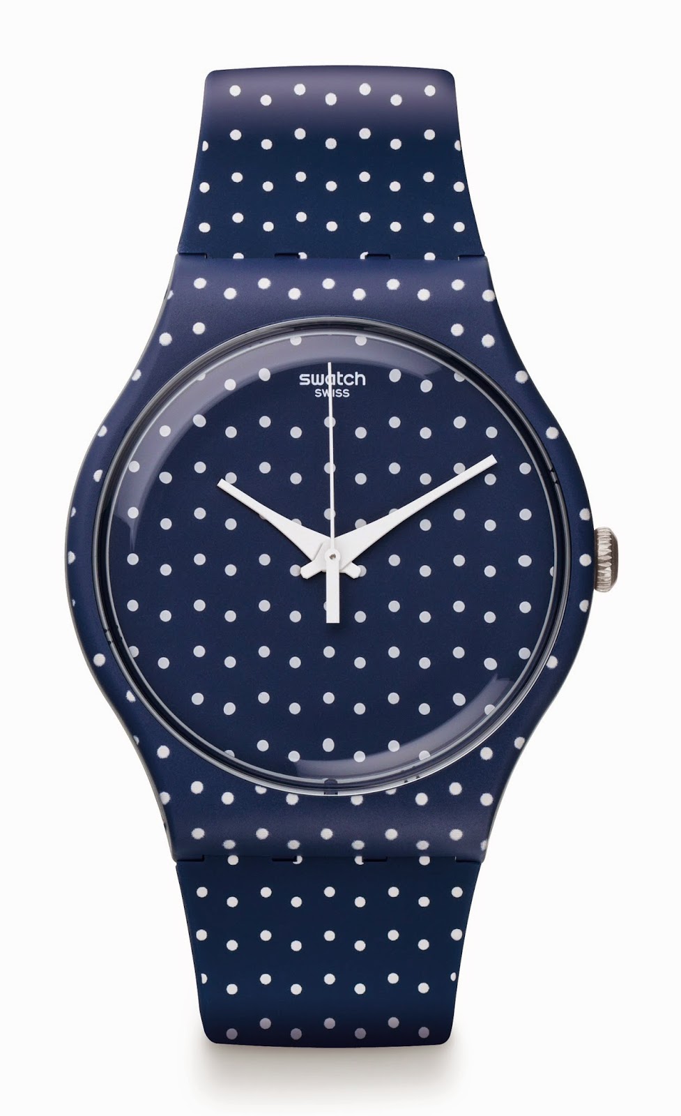 Cuadrante y correas: azul marino con lunares blancos