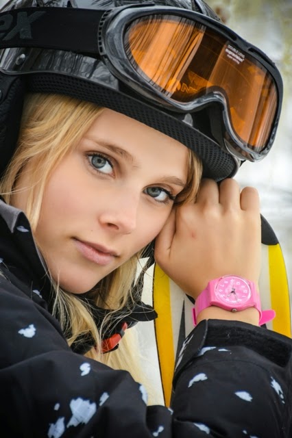 La modelo Jimena Buttilengo, fanática de la marca,  posó en una divertida sesión de fotos en la nieve junto a los Maxi Swatch y las nuevas colecciones.
