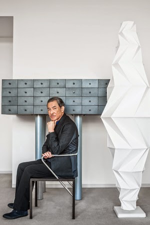 «Soy solo diseñador, no tengo ninguna pretensión de convertirme en artista. Quiero disfrutar de la creatividad en el mismo espíritu de actividades como el diseño gráfico o la danza», responde a Fuera de Serie el japonés Issey Miyake (Hiroshima, 22 de abril de 1938). Está atardeciendo y la sede de la Fundación Cartier en el Boulevard Raspail parisino se llena de luz rojiza. Dentro y fuera del edificio de Jean Nouvel, se despliegan lentamente unas extrañas in-ei o «esculturas de sombra y luz» creadas por él a partir de materiales reciclados. Inspirándose en los trabajos matemáticos de Jun Mitani para la representación geométrica en 3D y en el bestiario del grafista Kazumasa Nagaim, un filosófico Miyake ideó estas lámparas ecológicas que se contraen y extienden en un alarde domótico, según la luz que perciben, y simbolizan «animales en el suelo y peces en el techo», explica sonriente. Desarrolladas por Artemide, han nacido 10 luminarias, entre las que están Mendori (como una concha de galápago, 800 euros) y Minomushi (de suelo, 1.800 euros).