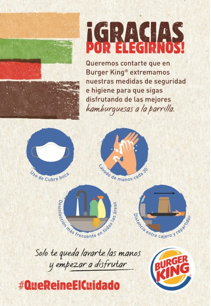 “Nuestra prioridad es colaborar con el bienestar de todos y acercarle tranquilidad a nuestros invitados sobre las medidas que estamos tomando para resguardar su salud mientras disfrutan de sus combos preferidos. Para garantizarlo, continuamente estamos capacitando a nuestros colaboradores y supervisando la ejecución, además de informamos diariamente acerca de las recomendaciones de higiene y seguridad para cuidarnos entre todos”, explican desde BURGER KING® Argentina.