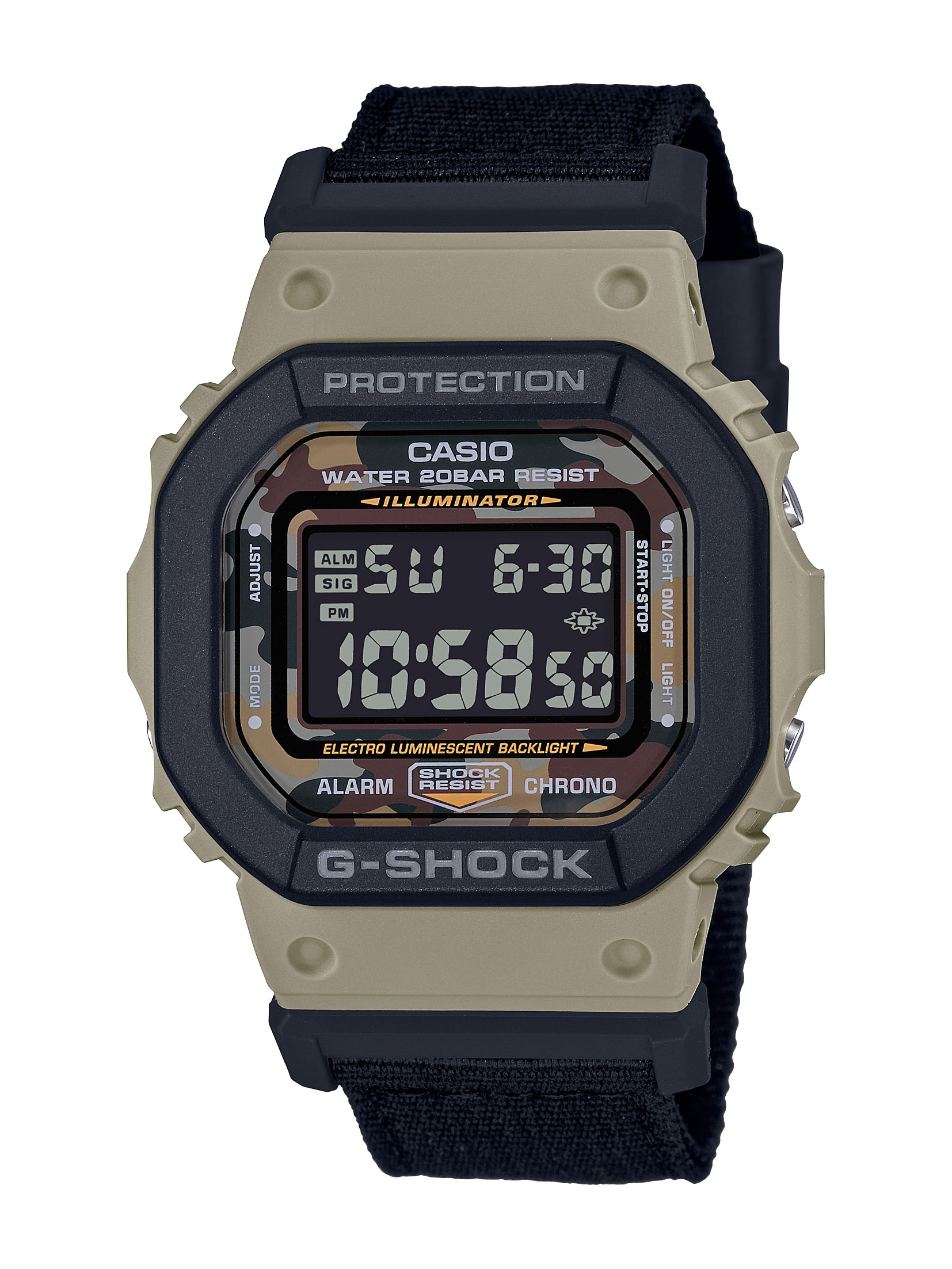 La serie DW-5600 también ofrece una atractiva variante para quienes busquen mostrarse renovados día a día con su reloj y combinarlo acorde adonde sea que lo lleven. Este modelo cambia el anterior marco de una pieza por un marco moldeado con dos capas de diferentes colores. El concepto de diseño era crear una línea de colores prácticos y sencillos, que combinan bien con la moda urbana. El modelo DW-5610SUS incluye una correa de repuesto de uretano, que se puede utilizar como se desee en reemplazo de su correa de tela.