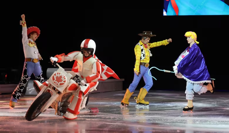 Sin el temor habitual a vulnerar “la magia de Disney”, la empresa posibilitó apreciar segmentos de dos cuadros aéreos y uno de bicicleta (llevados a cabo con ropa de ensayo) y un cuadro completo (vestuario inclusive) de patinaje sobre hielo tradicional, dedicado a la saga de Toy Story. Aunque escueto, el paneo permite anticipar que la propuesta de este año supera con creces a las anteriores.