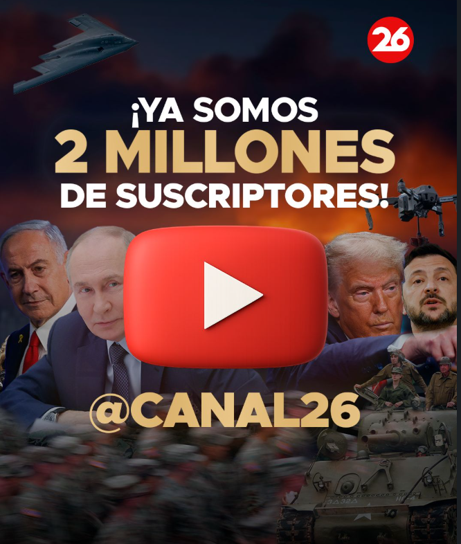 La comunidad de Canal 26 en YouTube crece a diario y consolida una propuesta que combina inmediata, profundidad y visión global. Para seguir todas las novedades, coberturas en vivo y análisis de la actualidad minuto a minuto, podés suscribirte en  youtube.com/c/canal26