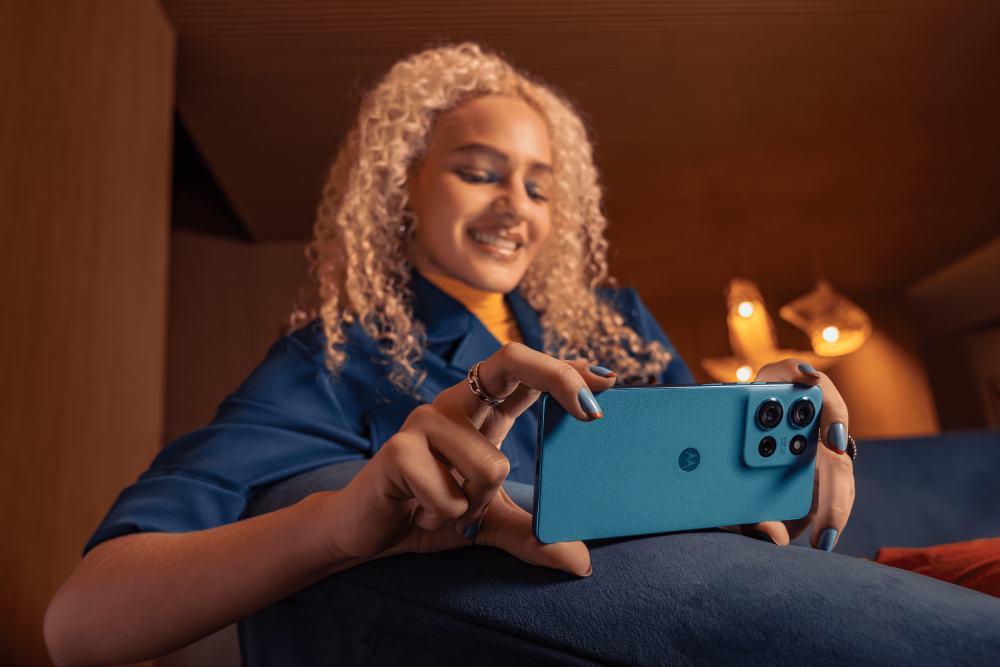 Viene con 8 GB de RAM (hasta 16 GB con RAM Boost)4, batería de 5.000 mAh, recarga TurboPower de 30 W y sistema de cámaras de 50 MP.