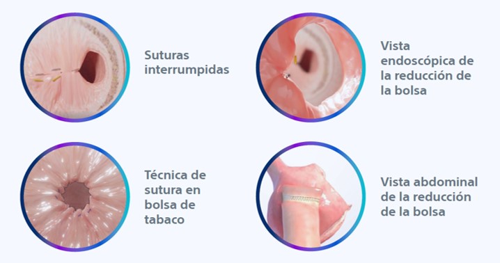 Mediante un dispositivo de sutura endoscópica conectado al extremo de un endoscopio, es posible reducir de forma significativa el tamaño del estómago. Se pueden realizar dos tipos de abordajes diferentes: