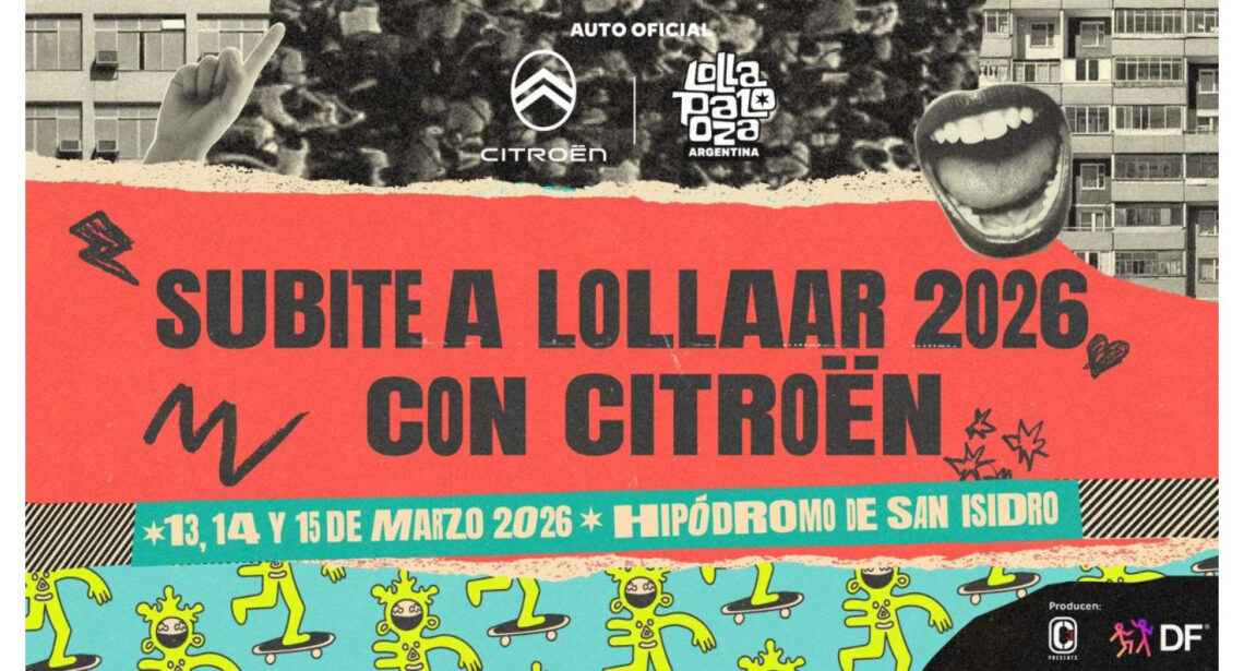 Citroën, una marca de Stellantis, anuncia que será nuevamente la automotriz oficial de Lollapalooza Argentina con la producción de DF Entertainment y C3 Presents. La marca del doble chevron será el vehículo oficial del festival más importante de la región, que se llevará a cabo los días 13, 14 y 15 de marzo del 2026 en el Hipódromo de San Isidro en la provincia de Buenos Aires.