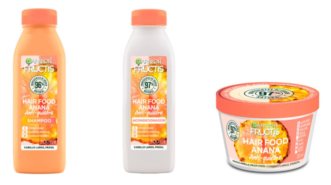 Esta nueva línea de Garnier está compuesta por un shampoo transparente sin siliconas, con una fórmula limpiadora a base de tres agentes de origen vegetal y 100% biodegradables. Un acondicionador nutritivo, que gracias a sus ingredientes naturales aporta flexibilidad, suavidad y facilita el desenredado. Y una mascarilla 3 en 1 enriquecida con extracto de ananá, de textura cremosa y rica en nutrientes e hidratación. Podés usarla como crema de tratamiento (dejándola actuar unos minutos antes de enjuagar), como acondicionador, aplicándolo de medios a puntas y luego enjuagando, y como crema para peinar (sin enjuague).