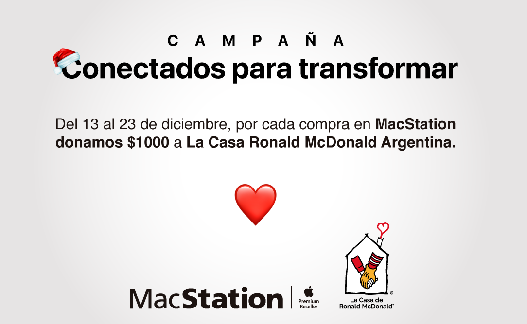 Buenos Aires, diciembre de 2025- MacStation, el Apple Premium Reseller con más de 20 años de trayectoria en el país, se une a Casa Ronald McDonald —asociación civil independiente cuya misión es garantizar que ninguna familia enfrente sola la enfermedad de un hijo— para lanzar la acción solidaria “Conectados para Transformar”.