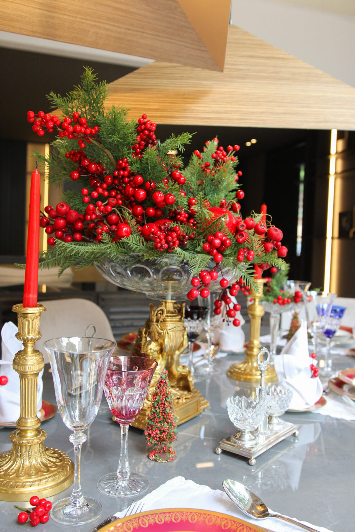 La mesa Golden Deluxe de Claudia Faena buscó por sobre todo ser una mesa muy alegre, donde predominan los cristales, los brillo y los colores, porque esta fecha es un momento para festejar la vida, Festejar el renacer, el que estamos juntos, que nos volvemos a encontrar, Entonces la idea es darle a todas esas emociones un marco de alegría.