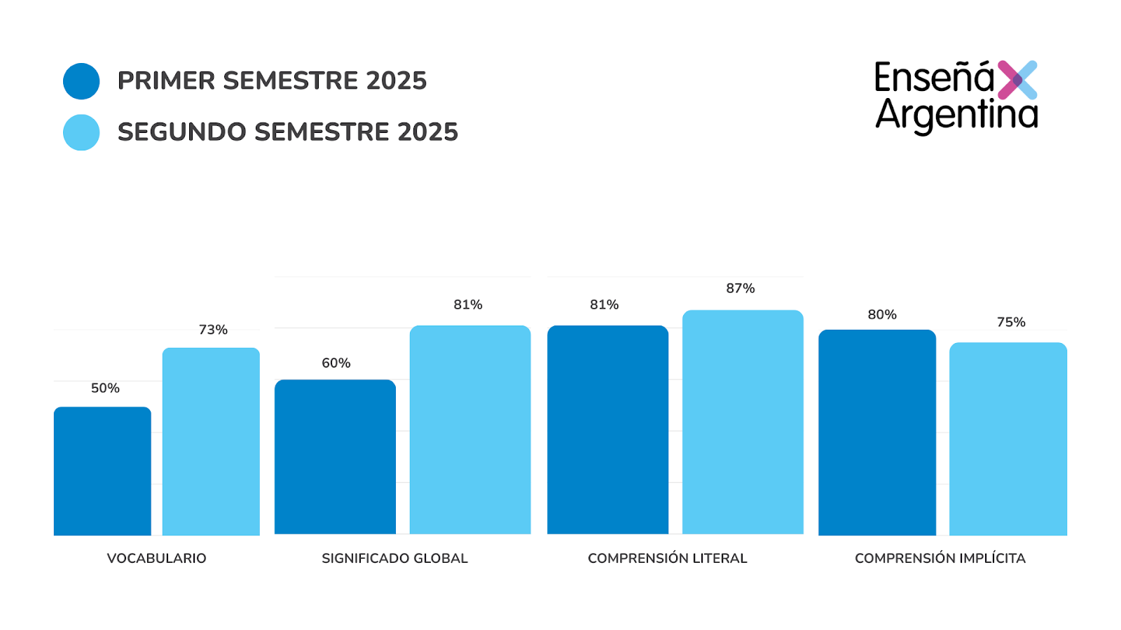 Comprensión literal: 81% → 87%.