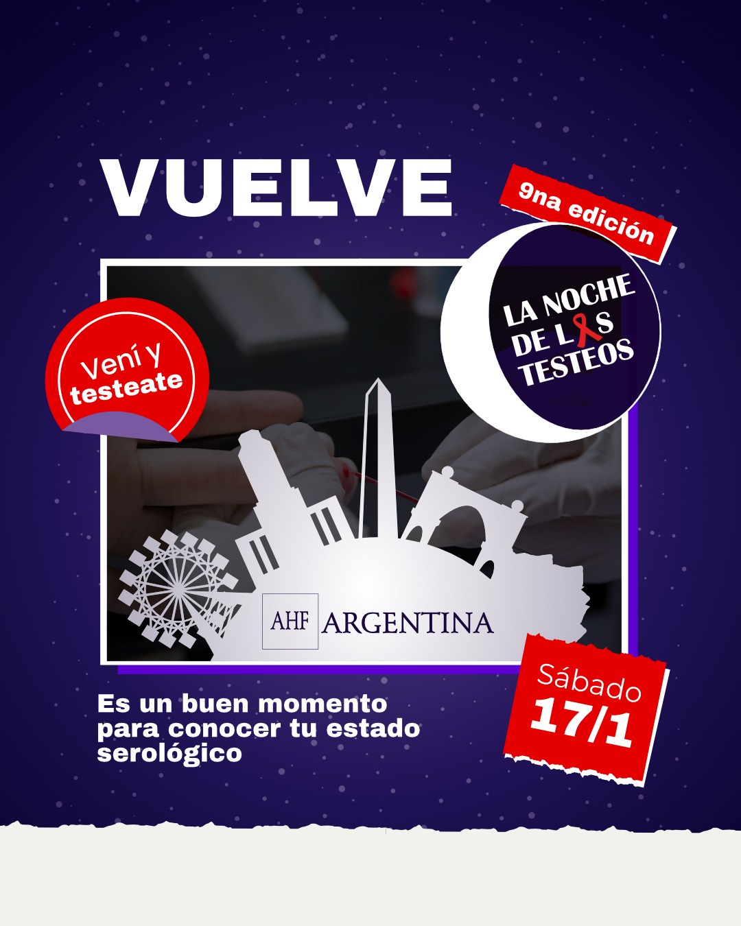 Buenos Aires, enero de 2026.- El sábado 17 de enero se llevará a cabo la 9° edición de La Noche de los Testeos, la jornada de prevención y diagnóstico que AHF Argentina (AIDS Healthcare Foundation) impulsa junto a organizaciones aliadas. Como parte de esta iniciativa, se realizarán actividades en diferentes puntos del país, con testeos rápidos de VIH, puestos de consulta e información y entrega de preservativos de su marca propia, Love.