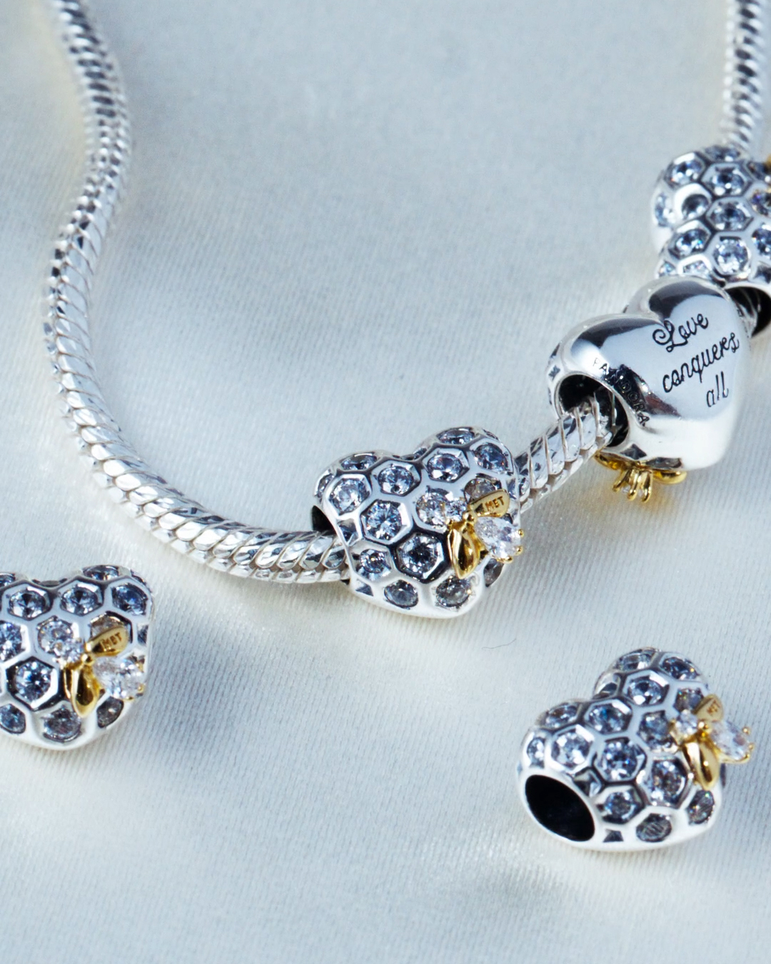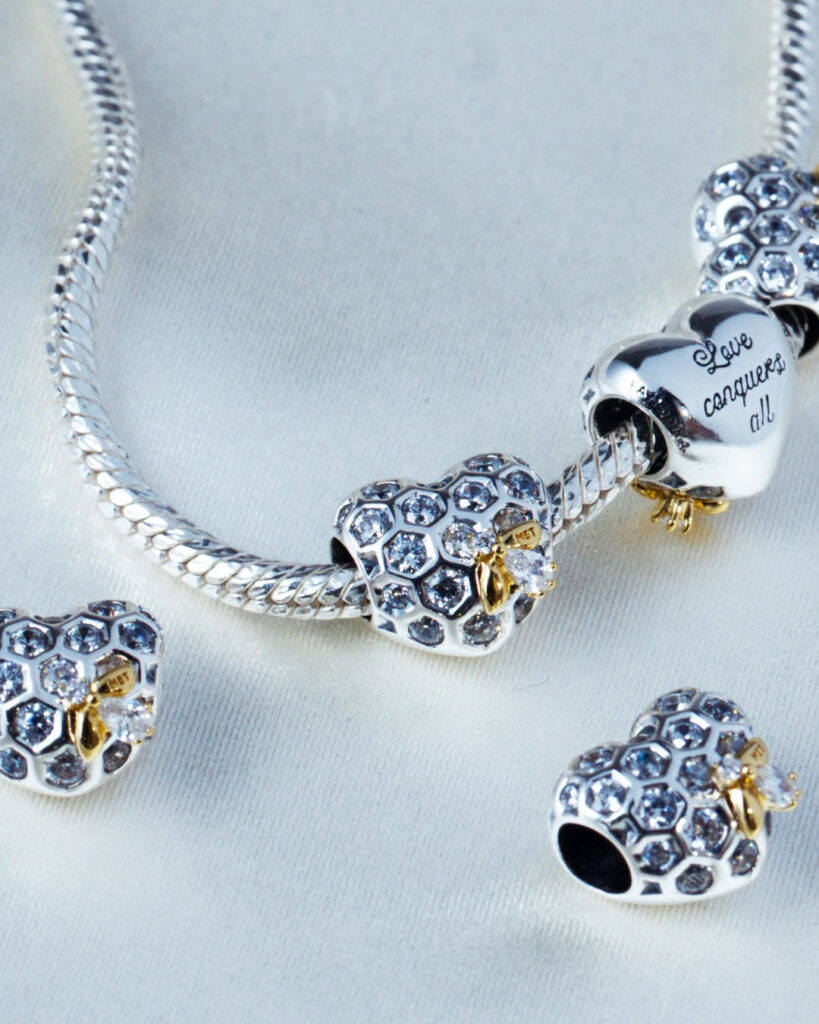 “Estamos reinterpretando el estilo de la era de la Regencia desde una mirada contemporánea”, señalaron los Directores Creativos de Pandora, Francesco Terzo y Filippo Ficarelli. “Nos inspiramos en la abeja, siempre ligada a la familia Bridgerton. Esta colección habla de florecer y transformarse, con la abeja y la flor como guiños al amor y la pasión”.