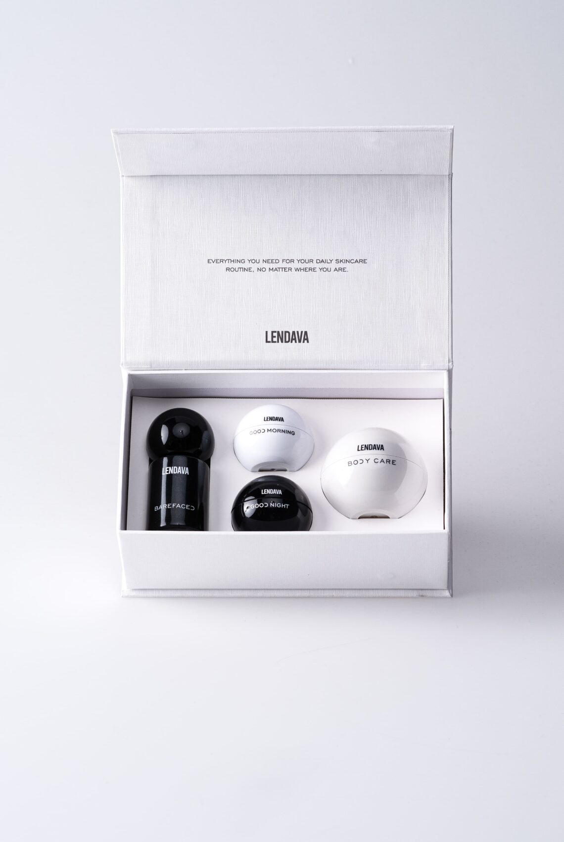 Un set que reúne los esenciales de la rutina Lendava en tamaño travel, ideal para mantener la piel cuidada incluso fuera de casa.