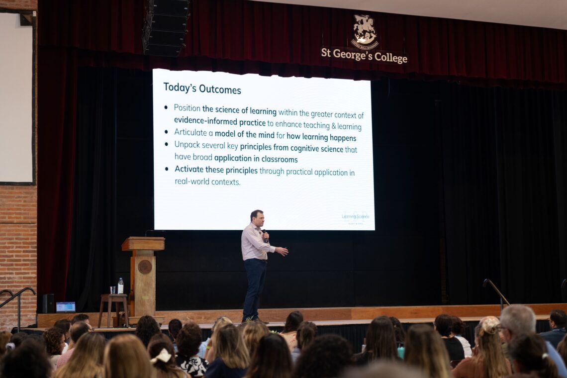 La jornada, titulada «Teaching with Learning in Mind» (Enseñar con el aprendizaje en mente), forma parte de un trabajo integral que el colegio viene desarrollando con el Dr. Heal para implementar prácticas educativas basadas en evidencia científica, trabajar en el aula sobre métodos de enseñanza que hoy en día está probado que funcionan y derribar preconceptos sobre educación que se vienen repitiendo hace décadas. De este modo, el St. George’s College busca democratizar el acceso a estos conocimientos, compartiéndolos con toda la comunidad educativa en la región.