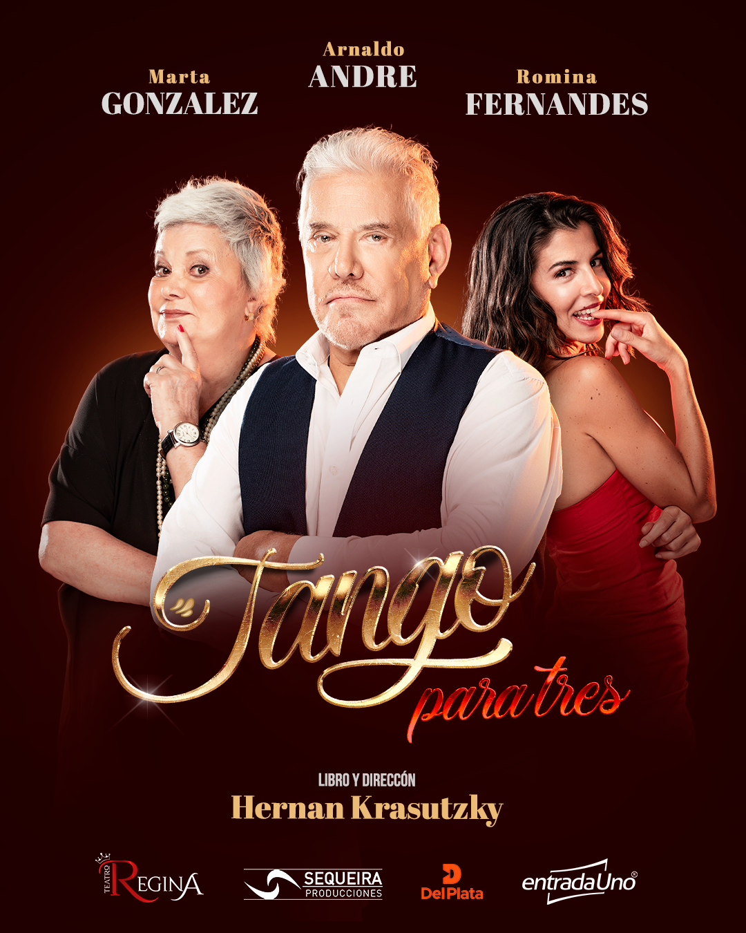 Buenos Aires, abril 2026.- Arnaldo André y Marta González se reencuentran en el escenario, acompañados por Romina Fernándes, en esta historia escrita y dirigida por Hernan Krasutzky, bajo la producción de Damián Sequeira.