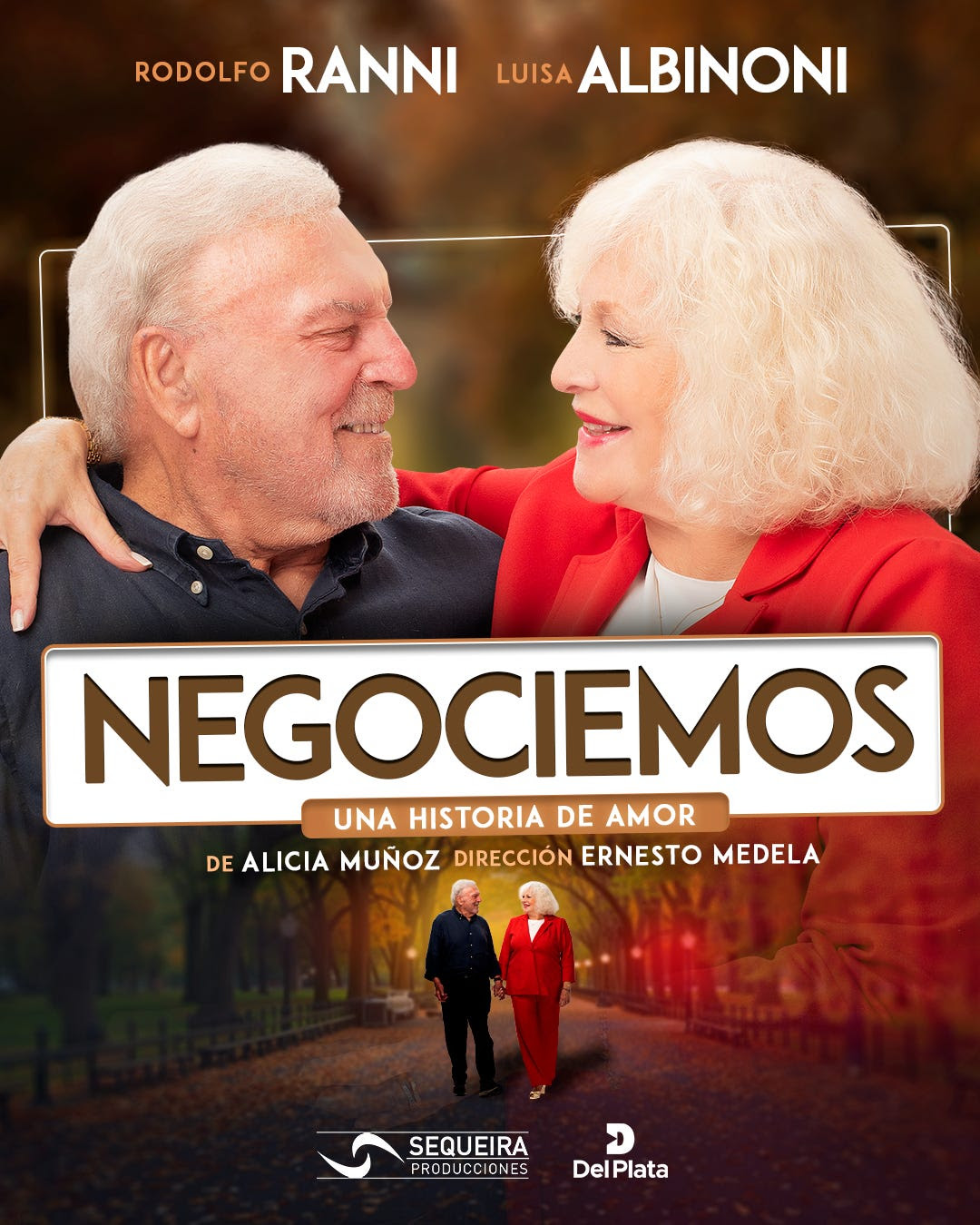 “Negociemos… Una historia de amor” atraviesa una nueva etapa con la incorporación de Luisa Albinoni al elenco, quien se suma como protagonista femenina junto a Rodolfo Ranni. La obra, escrita por Alicia Muñoz, dirigida por Ernesto Medela y la producción de Damián Sequeira, continúa su recorrido con un renovado impulso a partir de este encuentro escénico entre dos figuras emblemáticas. Rodolfo Ranni, quien viene formando parte del proyecto y sosteniendo el personaje de Miguel, vuelve a subirse al escenario con toda su potencia actoral para darle vida a este hombre de carácter firme, humor ácido y una historia que lo volvió más escéptico que romántico. El gran cambio llega con la incorporación de Luisa Albinoni, quien asume el rol de Amalia: una mujer en pleno proceso de reconstrucción personal, que encuentra en un encuentro inesperado la posibilidad de reconfigurar su historia. La trama se desarrolla a partir de ese cruce casual en una plaza, donde dos mundos completamente distintos se enfrentan, se incomodan y, poco a poco, empiezan a descubrir puntos en común. Entre diálogos filosos, momentos de humor y situaciones profundamente humanas, la obra propone una mirada honesta sobre los vínculos en la madurez. El resultado es una química renovada que reconfigura la dinámica de la obra y le da un nuevo aire a esta historia sobre segundas oportunidades. Porque si algo plantea “Negociemos… Una historia de amor” es que nunca es tarde para volver a empezar, incluso cuando todo parece ya dicho. El encuentro entre Luisa Albinoni y Rodolfo Ranni se convierte en el gran atractivo de una propuesta que sigue creciendo y encontrando nuevas formas de emocionar. |