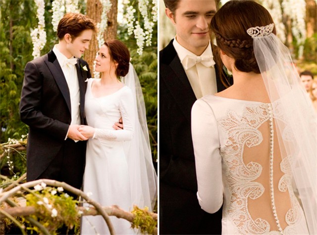 Las fans de la saga ‘Crepúsculo’ se volvieron locas buscando un vestido lo más similar a este de espectacular espalda de Carolina Herrera que Bella Swang lució para su boda con Edward Cullen.