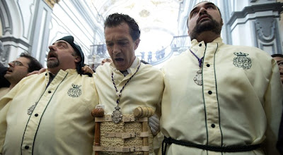 | Banderas, abrazado a dos compañeros durante la procesión. / FOTO: EFE | VÍDEO: ATLAS |